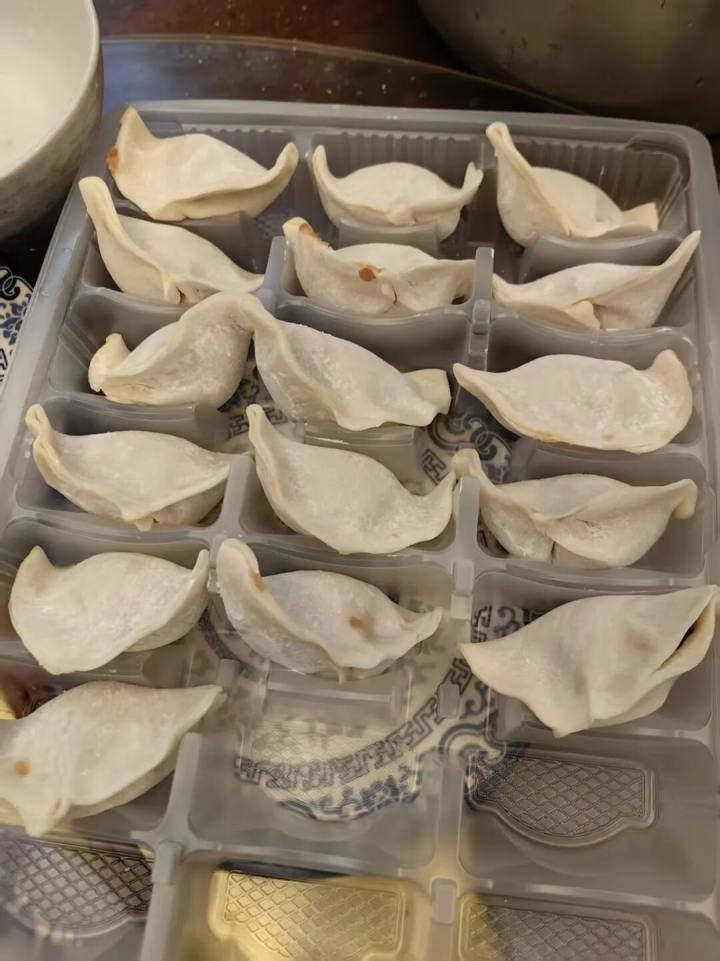上周五晚上,杭州的王爸爸给我传来2张照片,照片里,一个个饺子整齐地码在盒子里。他告诉我:“正在包饺子,100个猪肉馅。这是孩子的早餐!”